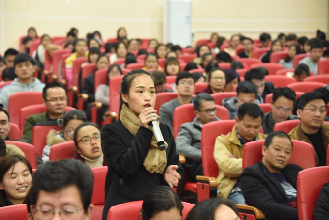 宣讲过后,陈洪涛与师生互动问答,解答了“思政课教师如何做好党的十九大精神的‘三进工作’”、“党的十九大报告对大学生有什么要求”等问题。师生们表示,要努力学深悟透党的十九大精神,将学习工作融入到新时代,践行新思想、实现新作为、作出新贡献。