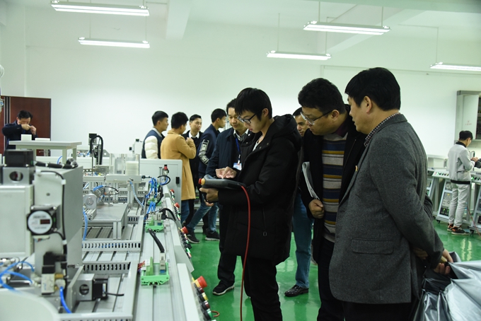 本次抽查现场全程进行网络直播,各班同学在教室就同步看到抽查结果。抽查结束后,各系抽查经典诵读的班级和学生代表到第二学术报告厅进行现场抽查。随后,学院党委书记韦伟松带队分别到现代广场、学前实训楼、数控实训室、电子电力实训室、工业分析实验室、计算机基础实训室等地现场查看学生抽查测试情况。学生技能抽查是检验我院人才培养质量的重要手段,我院将以此为契机,营造浓厚的重技能、练技能、强技能氛围,切实提高人才培养质量。
