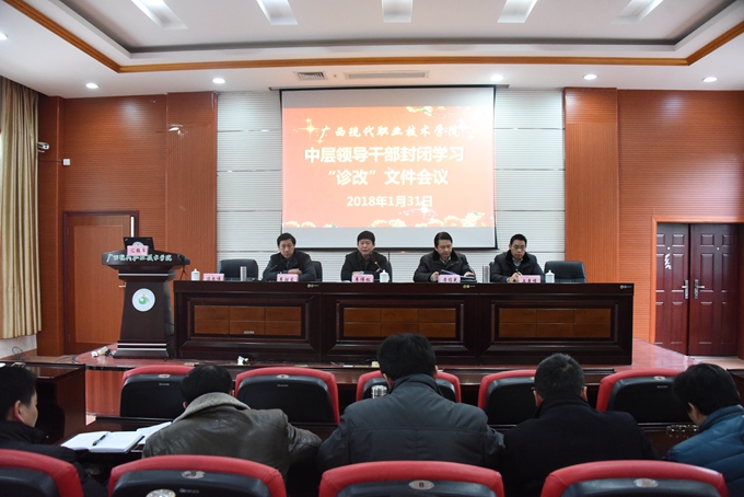 为主动适应我国职业教育发展的新机遇和新挑战,建立常态化的内部质量保证体系诊断与改进(以下简称“诊改”)工作机制,不断提高学院人才培养质量,1月31日,我院在第二学术报告厅召开中层领导干部学习“诊改”文件会议。学院党委书记韦伟松、院长黄绍光、副院长韦胜东、纪委书记冉景峰出席会议。学院全体中层领导干部参加会议。会议由院长黄绍光主持。