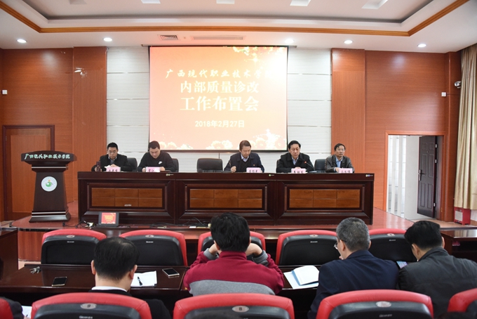 2月27日,我院在学院第二学术报告厅召开内部质量诊改工作布置会。学院院长黄绍光,党委副书记、副院长霍江华,副院长韦胜东、纪委书记冉景峰、副院长冯忠伟出席会议。学院全体中层领导干部参加会议。会议由副院长韦胜东主持。