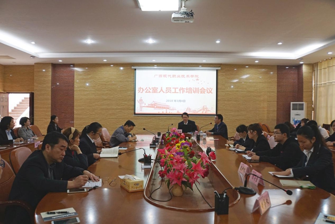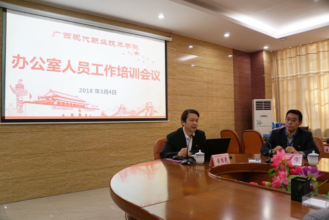 为加强学院办公室战线系统学习工作,提升各办公室工作人员的服务意识和服务能力,3月4日上午,学院在图书馆会议室举行了办公室人员培训会,各系、各部门办公室近七十名工作人员统一着装、精神饱满参加培训。培训会由院长黄绍光主讲,纪委书记冉景峰主持。