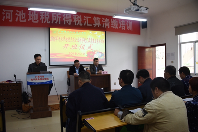 4月10日,河池市地方税务局2018年企业所得税汇算清缴专题培训班开班仪式在我院举行。河池市地税局总会计师韦立秋,学院党委副书记、副院长霍江华出席仪式。全市地税系统干部和企业财务人员近80人参加培训。