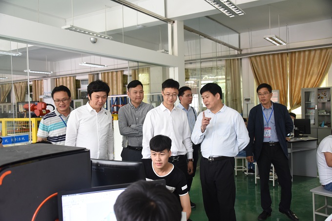 江苏力德尔电子信息技术有限公司一行分别到我院参观了电商学院、学前教育实训室、有色冶金实训室、机器人实训室和马上办服务中心。学院党委书记韦伟松就我院工业机器人专业建设、人才培养、技能竞赛成果、发展思路等情况向陈小波一行作了介绍,陈小波对我院取得的成绩予以高度肯定,并希望能与我院在校企合作开展方面进行深入交流。