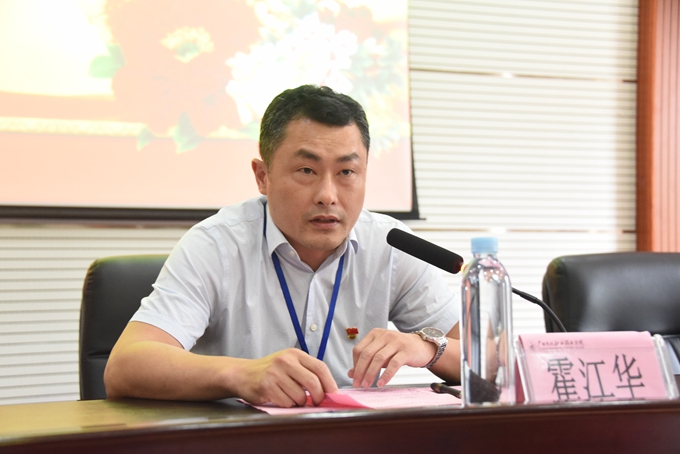 霍江华在开班仪式上致辞,他向学员们简单介绍了河池市和学院的基本情况。他希望参加培训的学员们要珍惜学习机会,集中精力听课,提高学习效果,真正能学有所获,并将所学知识转化为求生存、谋发展的实用技能,通过劳动增加收入,为加快生产、发家致富打下良好基础。他强调学员们一定要遵守校纪,注意安全。