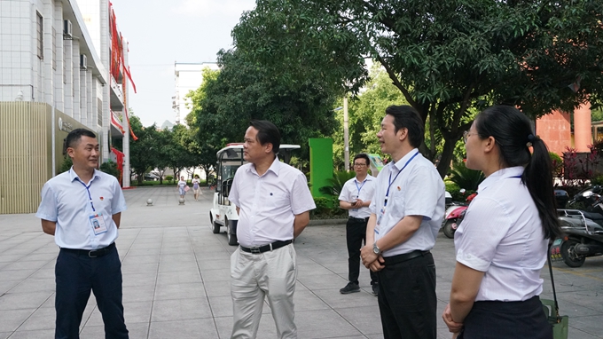 黄云宏一行先后参观了电商学院、驾校、工业机器人实训室、马上办服务中心等地。调研中,韦伟松书记向黄云宏一行详细汇报了学院的办学情况、特色专业及人才培养等。