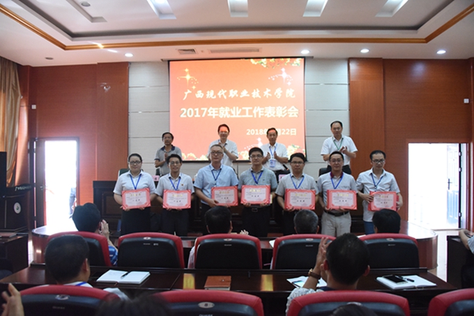 会上,与会领导为荣获2017年优秀就业工作先进集体、先进个人颁发证书和奖励,各系部还向院长黄绍光提交了2018年就业工作责任状和2018年建档立卡毕业生就业工作责任状。