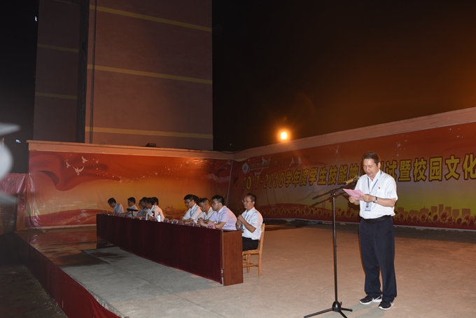 5月24日晚,2017-2018学年度学生技能抽查测试暨校园文化活动总结表彰大会在我院田径场举行。学院院长、党委副书记黄绍光,学院副院长韦胜东,综合处处长覃孜,各系部相关负责人及全体师生参加了表彰大会。大会由教务科研处处长卢森焕主持。