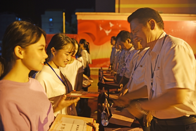 教育系刘肖、电子系张润洁作为代表受表彰学生发言,号召大学生用学习成才、服务社会来报答学院对大家的关爱。建信系主任胡万志、教育系黄玉淑老师代表受表彰教师发言,他们表示,感谢学院领导的鼓励与支持,将不忘教育初心,以更加饱满的热情投入到教学工作中去,不辱使命,不负重托。