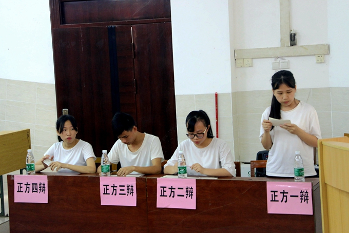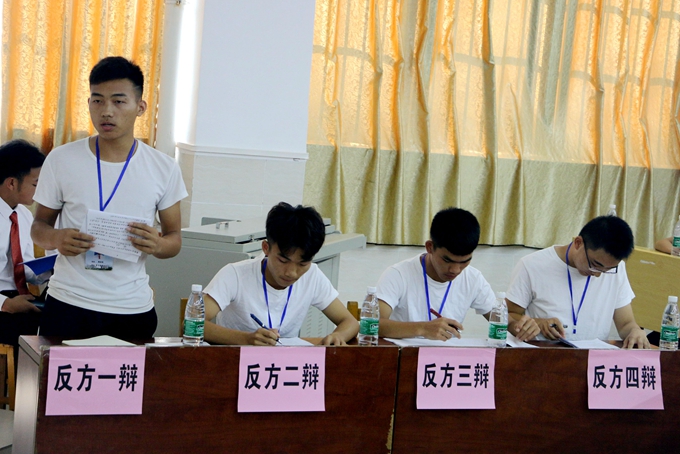 本次参赛队伍有:资源系代表队、建信系一队、建信系二队、建信系三队、教育系代表队、经管系代表队、电子系代表队、社团联合理事会代表队。各代表队们展开了激烈的辩论,昂扬斗志,辩论中选手们依然不失风度,良好的风范,出色的口才、敏捷的思维令场下观众为之折服,掌声不断。各辩手能言善辩,互不相让,针锋相对。