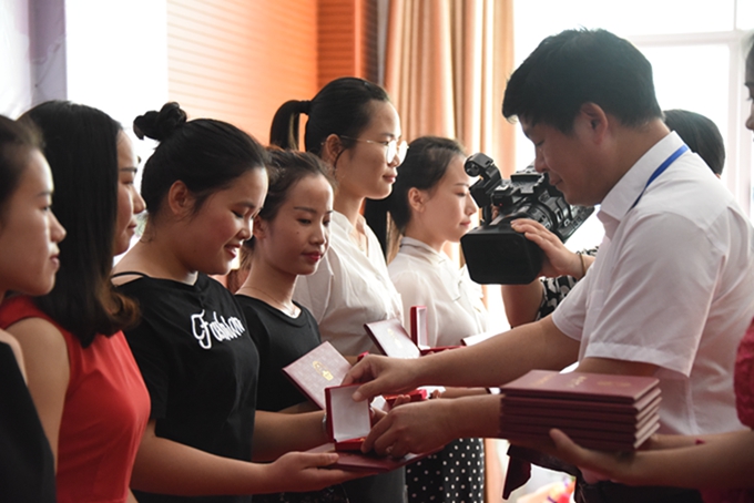 副院长冯忠伟宣读荣获2018年区级优秀毕业生、院级优秀毕业生的表彰文件以及毕业生文件,学院领导为获奖学生颁发荣誉证书和毕业证书。