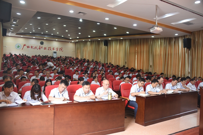 9月2日上午,我院在第一、第二学术报告厅召开 2018—2019学年度上学期教职工大会。学院党委书记韦伟松、院长黄绍光、副院长韦胜东、副院长冯忠伟出席会议,学院全体教职工参加会议。会议由副院长韦胜东主持。