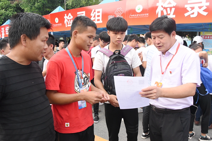此次迎新工作坚持“热情、高效、有序、安全”的基本原则,市政协副主席陆克、学院党委书记韦伟松、院长黄绍光等领导在迎新期间,深入我院各迎新点视察指导工作,看望新生、家长和工作人员;各系部工作人员、学生志愿者认真、热情接待新生和家长,引导办理入学手续,耐心解答问题,高效暖心的服务得到学生和家长的点赞。