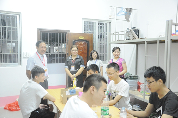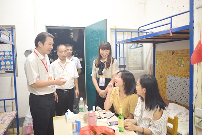 在金风送爽的九月,我院迎来了2018级新生。为了解我院新生住宿和生活情况,引领新生尽快适应新生活新环境,9月12日晚,学院党委书记韦伟松、院长黄绍光,党委副书记、副院长霍江华,副院长韦胜东、副院长冯忠伟分别带队走访我院各宿舍区,看望2018级新生,表达学院对新生的关爱,为新生带去在校如家般的温暖。