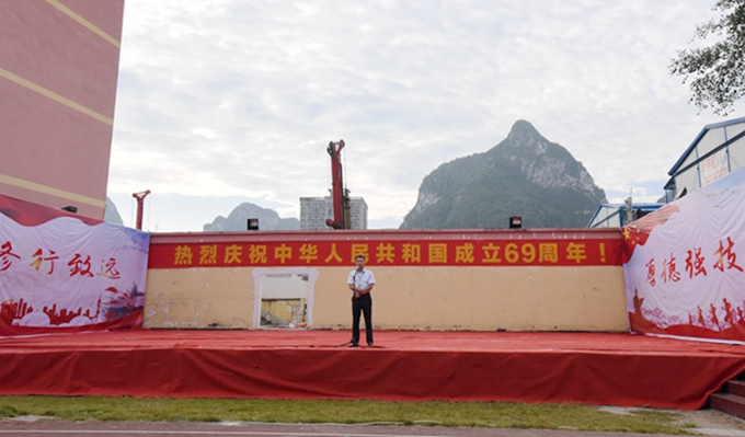 9月30日,我院在田径场举行升国旗仪式,共同庆祝中华人民共和国成立69周年。学院党委书记韦伟松、院长黄绍光,党委副书记、副院长霍江华,副院长韦胜东、副院长冯忠伟出席。全体师生参加。仪式由学工处处长李铃主持。