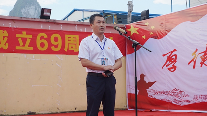 学院党委副书记、副院长霍江华发表了国旗下讲话。霍江华首先表达了对祖国欣欣向荣的美好祝愿,并指出,今年恰逢中国改革开放40周年,举行升旗仪式也是一次重要的爱国主义教育活动。只有铭记历史、缅怀先烈,才能拥抱光明未来;唯有传承先烈风骨,才能挺起民族脊梁。希望师生们心怀祖国,不懈奋斗,为实现中华民族伟大复兴的中国梦贡献力量。霍江华强调,全体师生在国庆放假期间要特别注意出行、防盗、防火、防骗、防溺水、防意外伤害和饮食等方面的安全,并按时返校。