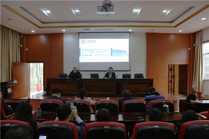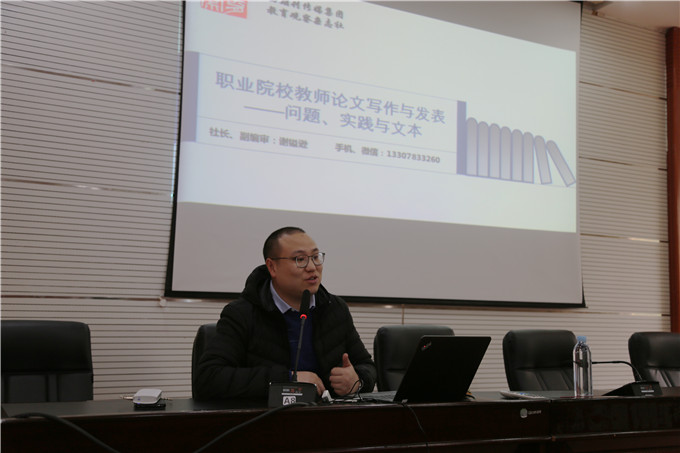 广西期刊传媒集团教育观察杂志社社长谢镒逊到我院作职业院校教师论文写作专题讲座