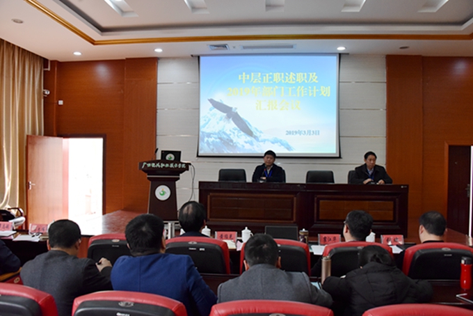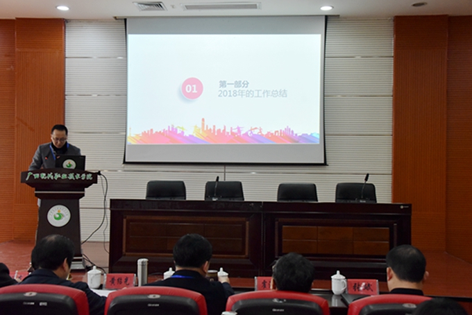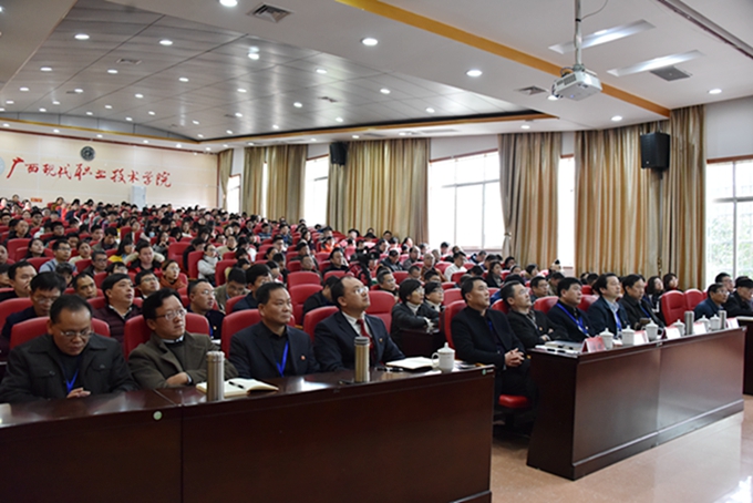 3月4日上午,我院在第一、第二学术报告厅召开2018-2019年度下学期开学典礼暨中层正职述职及2019年部门工作计划汇报会议。学院党委书记韦伟松、院长黄绍光,学院党委副书记、副院长霍江华,纪委书记张斌,副院长冯忠伟出席会议。会议由副院长韦胜东主持。 学院党委书记韦伟松在会上指出,去年以来,学院各项工作取得显著成绩,办学规模逐渐扩大,管理服务水平不断提高,总体来说,学院整体工作成绩显著,局面喜人。韦伟松强调,全院教职工在新学期要继续以改革创新为动力,高度齐心、高度负责、高效工作,增强发展意识和忧患意识,以强烈的责任感和良好的精气神,以勇于争先的气魄和劲头,在各自岗位上争光出彩,为学院发展作出应有贡献。 会上,学院各系部中层正职领导在会上分别作了部门2018年工作总结和2019年工作计划的PPT汇报。 院长黄绍光在会上传达了全区教育大会和全区教育工作会议精神;对各系部工作汇报进行点评;回顾总结了2018-2019上学期学院整体工作。就新学期重点工作,黄绍光强调,要加强党的建设,把牢办学方向;强化作风建设,提升队伍建设;坚持德育为先,推进“三全育人”。黄绍光强调,全体教职工要提振精神,再创辉煌;要认清形势,强化主人翁意识,以对事业高度负责的态度履职尽责;要善作敢为,以不达目的不罢休的韧劲干好事业;要从本职出发,为学院发展尽心尽力。 学院全体教职工参加会议。