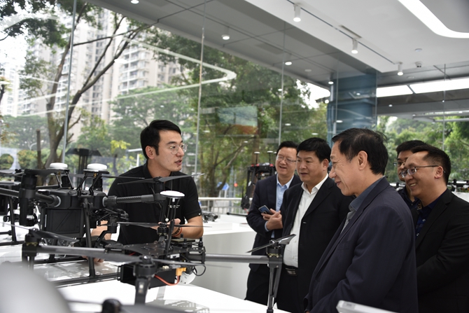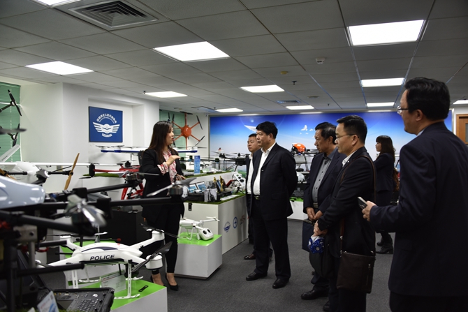 在深圳市大疆创新科技有限公司,考察团参观了规格档次高大上的无人机综合展厅,分享大疆无人机不同机型,感受到感受科技创新的力量。在座谈会上,考察团与公司属下的慧飞无人机应用技术培训中心就未来的学科建设、飞手培训、社会服务等进行交流协商,达成初步合作意向。