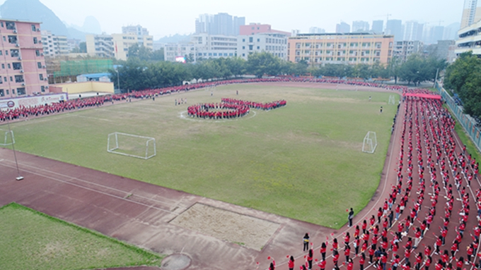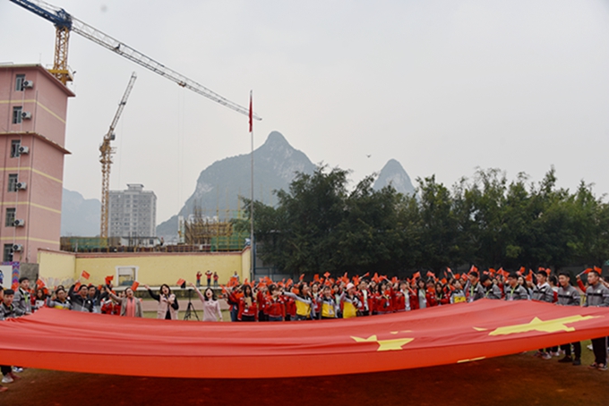 3月13日上午7时30分,一场别开生面的晨读活动在学院田径场举行。 学院副院长韦胜东以及教育系全体师生每人手拿五星红旗,齐声朗诵《我和我的祖国》,随后,在激昂的音乐声中,师生们以快闪的方式高唱《我和我的祖国》。10多名同学手举五星红旗绕场奔跑,拼字方阵拼出“70”字样,师生们以新颖独特的方式、蓬勃向上的精神面貌献礼祖国70周年华诞。