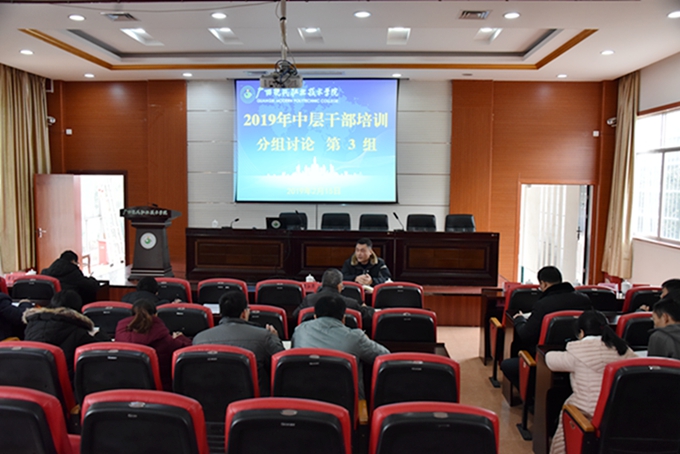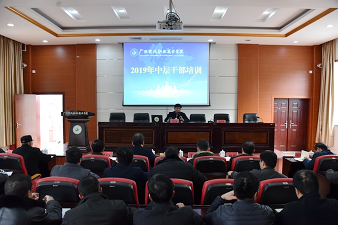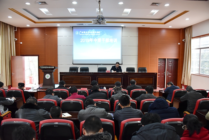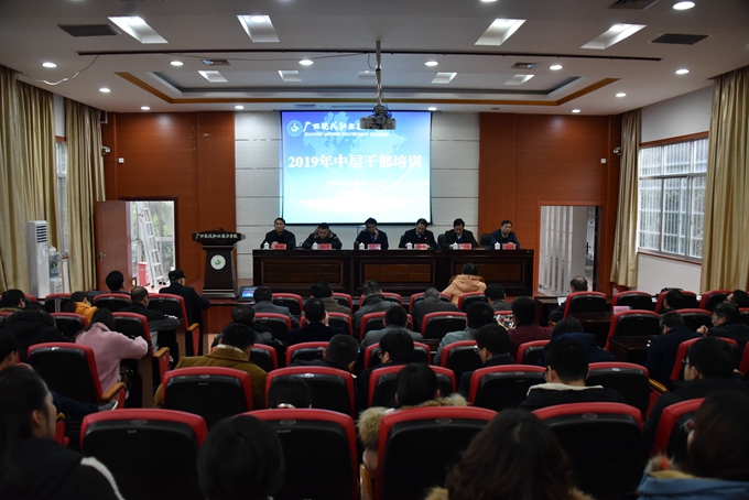 为进一步解放思想,转变作风,提升执行力,强推学院事业大发展,2月15日—16日,我院在第二学术报告厅举办2019年中层干部培训班。学院党委书记韦伟松、院长黄绍光,党委副书记、副院长霍江华,副院长韦胜东、纪委书记张斌、副院长冯忠伟出席。全体中层干部参加培训。 学院党委书记韦伟松作开班动员讲话。韦伟松指出,此次培训是学院开展为期两年的中层干部培训的第一站,学院将以铁手腕推进问题的整改,确保培训取得实效。韦伟松强调,各系各部门、全体中层干部要统一思想、高度齐心,认真剖析部门、个人当前制约学院发展的问题;要有信心、有定力,充分认识培训的必要性、重要性和紧迫性,拓展管理思路,加强创新能力,进一步推进学院精细化管理,提高工作质量和效率。 在开班仪式上,院长黄绍光介绍了延安整风运动的历史背景、历史过程和重要作用,介绍了中国共产党历史上的这场著名运动对推进“党的建设伟大工程”的深远影响,指出此次培训将按照延安整风运动的做法,以对教育事业、学院发展高度负责的态度,查找影响发展的关键问题所在,通过排查,达到找问题、知原因、增团结、明方向、促发展的目的。黄绍光强调,全体中层干部要以延安整风运动为启示,全面提升能力水平、服务能力,进一步强化责任与担当。 韩江河教授在开班仪式上作题为《中层干部是单位开创事业的中流砥柱》专题讲座。韩教授结合自身经历和经验阅历,提出中层干部要具备七个“力”:政治力、魄力、执行力、忍耐力、学习力、反省力和创新力,精彩讲座使参加培训的中层干部受益匪浅。