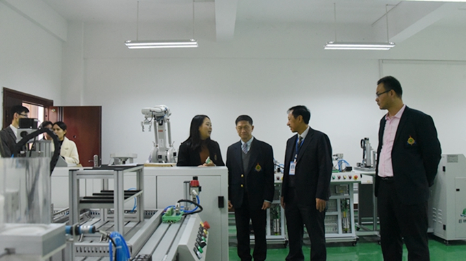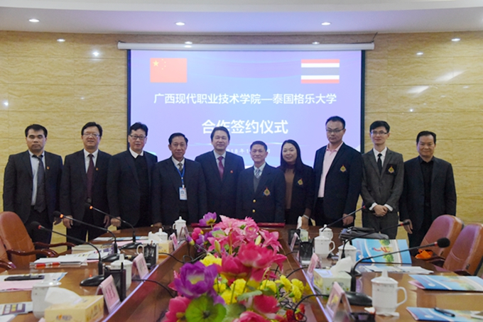 12月6日,泰国格乐大学副校长素帕一行4人到我院参观交流,并签订合作办学协议。 学院院长黄绍光、副院长韦胜东等领导在图书馆会议室会见泰国格乐大学参访团一行。黄绍光在会上介绍了学院基本情况,并希望与泰方建立坦诚友好、亲密无间的合作关系,在科研、教学等方面加强沟通交流。素帕介绍了泰国格乐大学基本情况,并表示我院注重学以致用和学生实操训练的办学模式给他留下了深刻印象,两校在办学目的、办学理念等方面有着高度契合度,希望两校能够在校际合作方面开展更多工作。 会上,双方还就国际合作、师生互派访学交流、联合培养学士、硕士、博士等合作事宜进行会谈,并签订合作办学协议。 当天,参访团还参观了河池电商学院特色农产品中心、学前教育实训室、会计实训室,智能制造工程训练中心等。 今年以来,我院积极推进国际交流合作,先后与越南国家商务部下属PIE培训中心、越南各职业院校,以及泰国格乐大学签订合作办学协议,通过国际交流合作办学,携手助推“一带一路”建设,进一步拓宽国际视野,提升办学水平。