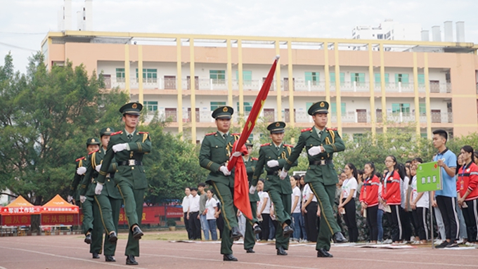 9月30日,我院在田径场举行升国旗仪式,共同庆祝中华人民共和国成立69周年。学院党委书记韦伟松、院长黄绍光,党委副书记、副院长霍江华,副院长韦胜东、副院长冯忠伟出席。全体师生参加。仪式由学工处处长李铃主持。 在全体师生的注目礼下,英姿飒爽的国旗护卫队队员们迈着整齐的步伐,护送鲜艳的五星红旗入场。伴随着庄严雄壮的《中华人民共和国国歌》,五星红旗在晨光中冉冉升起,迎风飘扬。全体师生高唱国歌,表达对祖国的热爱和崇高的敬意,共祝祖国母亲繁荣昌盛。 学院党委副书记、副院长霍江华发表了国旗下讲话。霍江华首先表达了对祖国欣欣向荣的美好祝愿,并指出,今年恰逢中国改革开放40周年,举行升旗仪式也是一次重要的爱国主义教育活动。只有铭记历史、缅怀先烈,才能拥抱光明未来;唯有传承先烈风骨,才能挺起民族脊梁。希望师生们心怀祖国,不懈奋斗,为实现中华民族伟大复兴的中国梦贡献力量。霍江华强调,全体师生在国庆放假期间要特别注意出行、防盗、防火、防骗、防溺水、防意外伤害和饮食等方面的安全,并按时返校。
