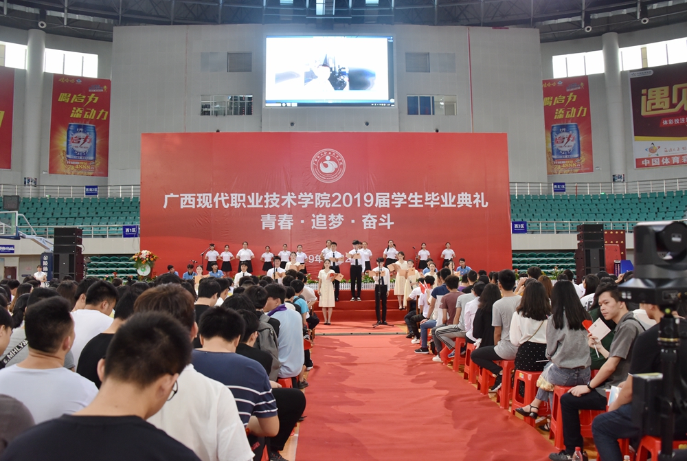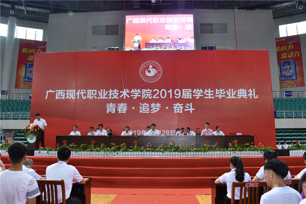 6月28日上午,我院在市体育馆举行“青春·追梦·奋斗”2019届学生毕业典礼。学院党委书记韦伟松、党委副书记霍江华、副院长韦胜东、副院长冯忠伟等领导出席典礼。各系各部门主要领导、毕业班班主任、教师代表、家长代表和2019届毕业生代表参加典礼。其他毕业生、学生家长、在校师生和社会人士通过我院直播通道收看毕业典礼。
