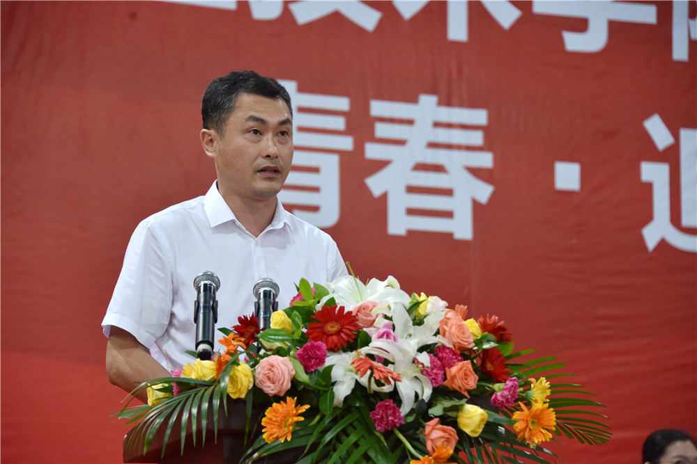 学院党委书记韦伟松在典礼上致辞。他代表学院全体领导班子、教职工向2019届毕业生表示美好祝愿。韦伟松希望全体毕业生要牢记“厚德强技,修行致远”的校训, 要学会担当,做一个勇于承担责任、敢于负责的人;步入社会,无论是什么角色职责,什么时候,都要敢于担当,尽职尽责。要积极向上,做一个踏实肯干的人;面对复杂而苦涩的现实,希望同学们保持乐观自信的心态,认准目标,持之以恒。要不断学习,做一个终身学习的人;我们身处信息时代,技术进步一日千里,希望同学们在学中干、干中学,不断提升自己的能力与素养。更要学会饮水思源,做一个知恩图报、爱校荣校的人。无论你将来走向哪里,无论我们相距多么遥远,有你的地方就有母校关注的眼光,母校将永远祝福你们,永远惦记着你们,学院将始终为你们感到骄傲!