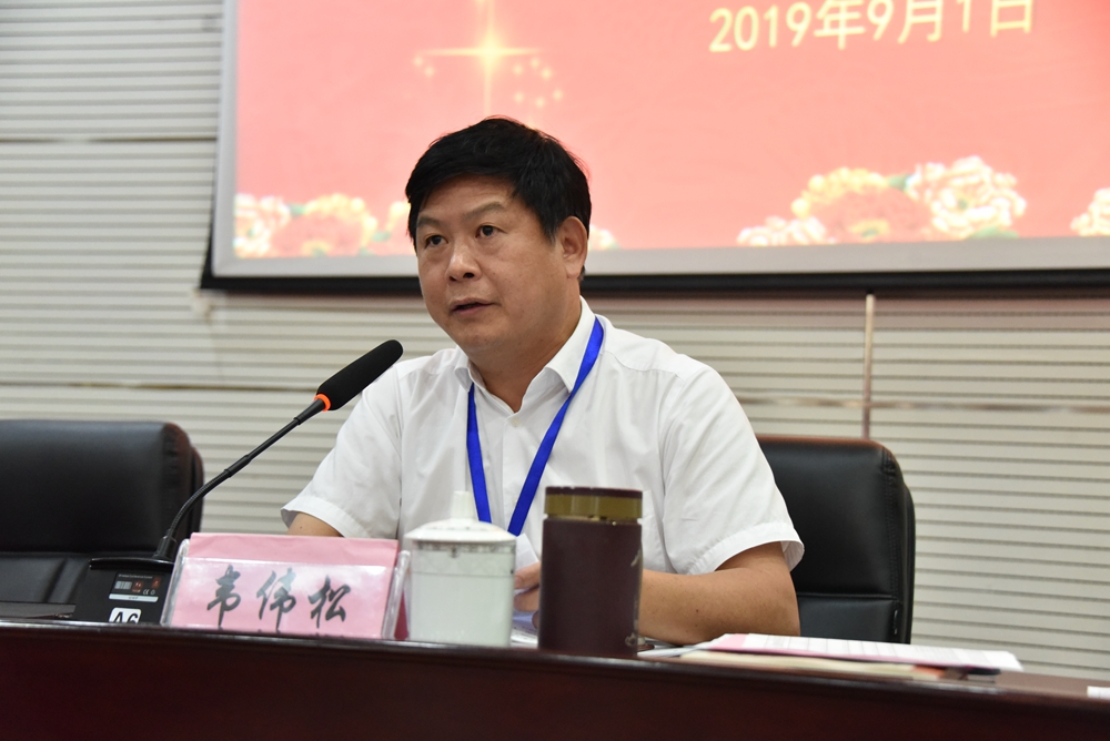 学院党委书记韦伟松作总结讲话。他表示,2019年上半年,学院取得了跨越式的进步,我们广大教职员工,要珍惜这种来之不易的局面,在未来的工作中,要布大局,全面突破,更上新的台阶。韦伟松书记就近期学院工作提出了几点意见:一是要以校训校规,学院精神为指导,党的指导方针作为引领,加强党的领导,全面加强党的建设,加强意识形态建设,党风廉政建设;二是将安全作为首要问题,结合学院规划,加强基础设施建设,增强加快学院发展的紧迫感和使命感;三是以双高建设为中心,建立健全长效机制,强化队伍建设,调动师生积极性,在谋划发展中突出重点,狠抓落实。四是强化纪律意识,在学院各项管理工作的规范性、创新性、时效性管理上出真招,见实效。新学期、新形势、新任务,希望全体教职员工思想要高度统一,树立必胜的信心,以时不我待的激情投入新学期工作;要进入状态,同心协力,锐意进取,攻坚克难,奋勇向前!