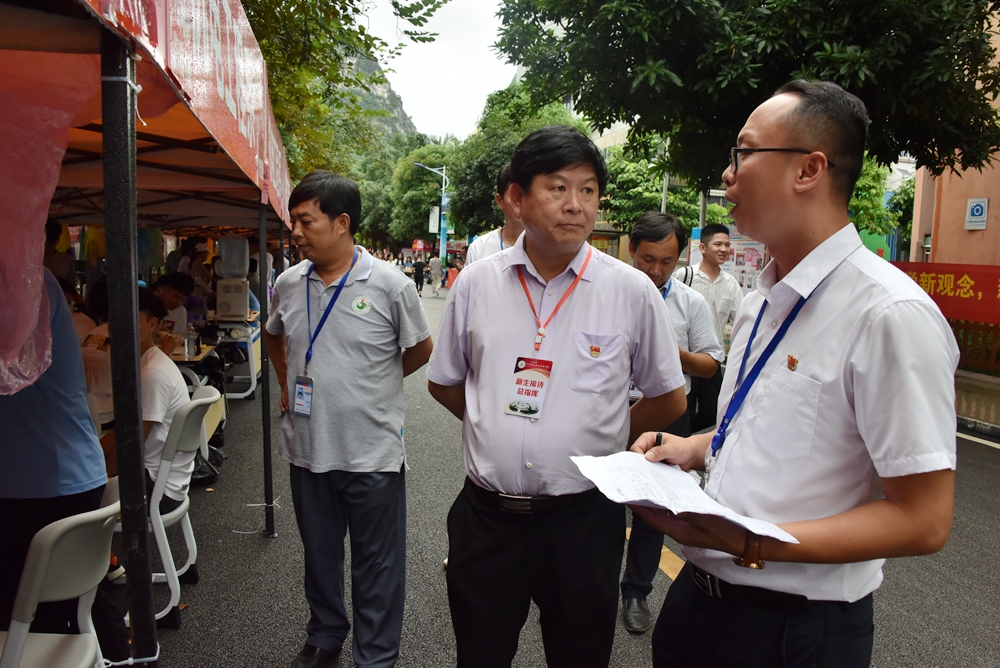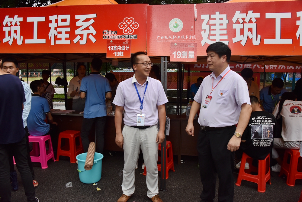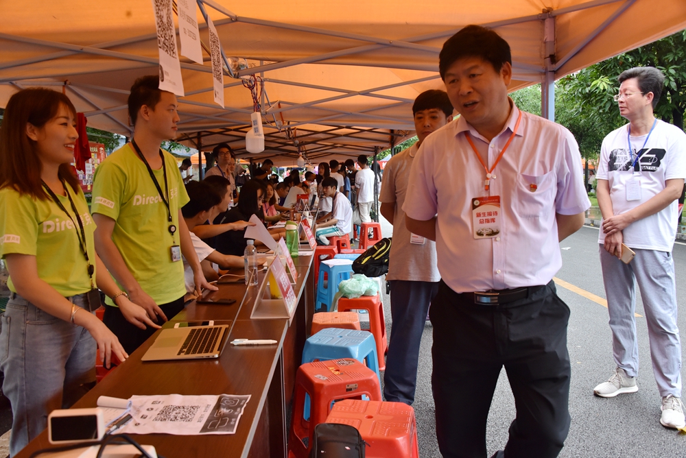 韦伟松书记深入各系部迎新工作点查看了迎新工作开展情况,仔细询问了新生报到和接待服务流程,认真听取了迎新工作的进展及迎新期间遇到的问题汇报,对各迎新组织有条不紊地开展迎新工作表示肯定,对迎新工作付出辛勤劳动的师生表示亲切慰问。同时,要求大家精益求精,把工作做实做细,保证新生顺利报到入学。韦书记反复强调,迎新工作是展示学校形象的大好时机,一定要利用好这个机会,用细致周到的迎新服务,让学生和家长了解学校、喜爱学校,让他们感受到学校大家庭的温暖、感受到学校蓬勃发展的美好前景。