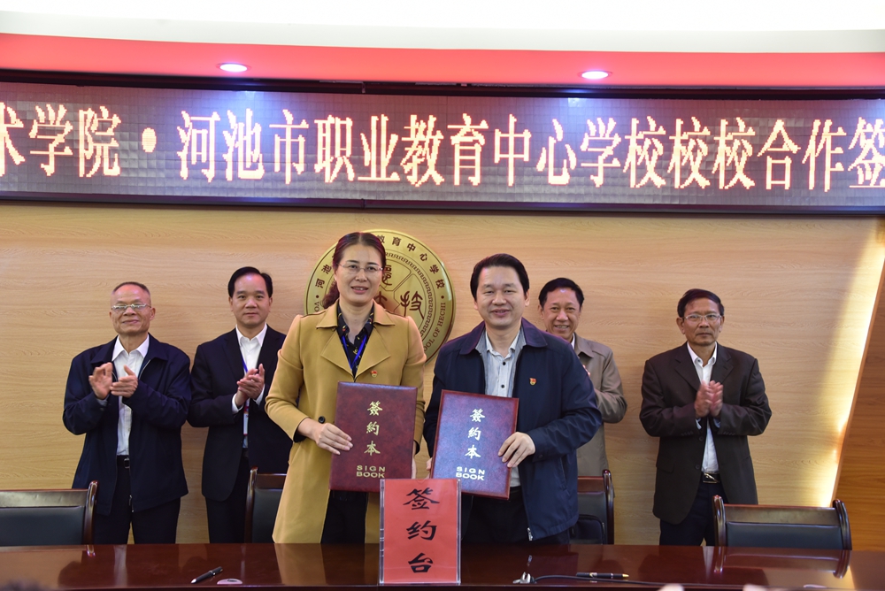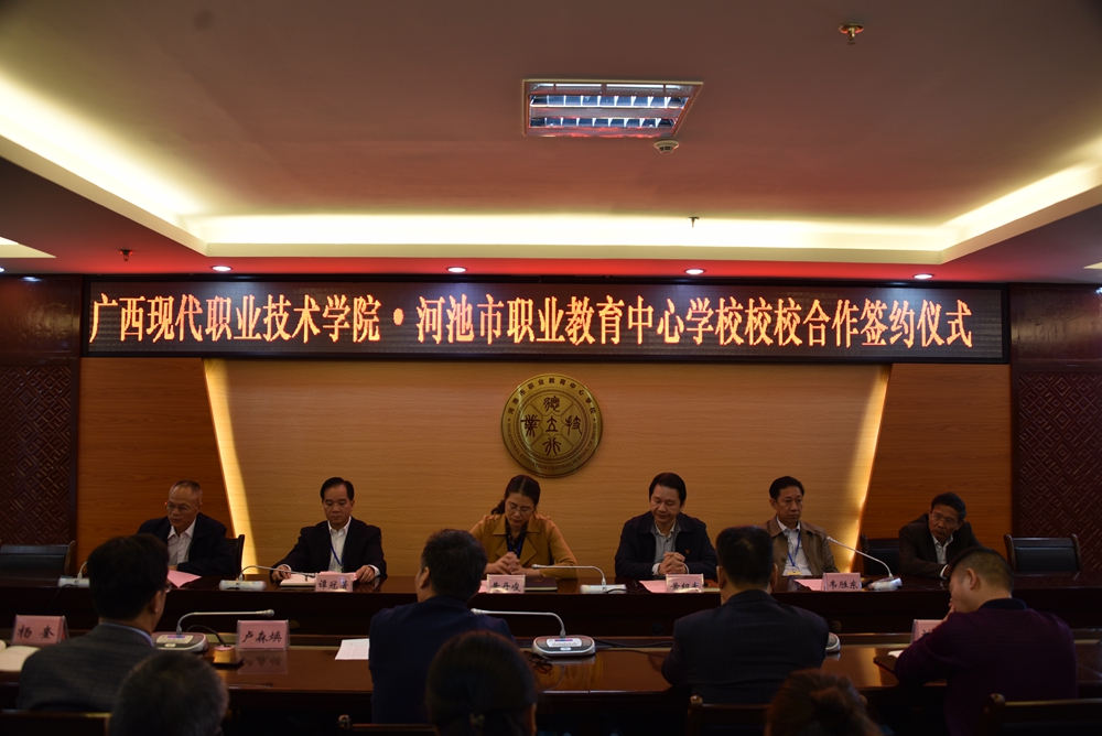 为进一步贯彻落实《国家职业教育改革实施方案》,响应“高职扩招100万”国家重大政策,11月4日上午,学院与河池市职业教育中心学校校校合作签约仪式在市职教中心举行,学院院长黄绍光、职教中心党委书记黄丹峻等两校领导出席仪式。副院长韦胜东主持会议。我院和市职教中心相关部门人员参加会议。