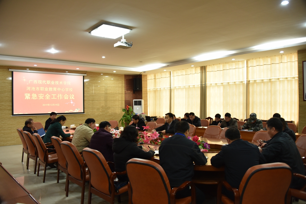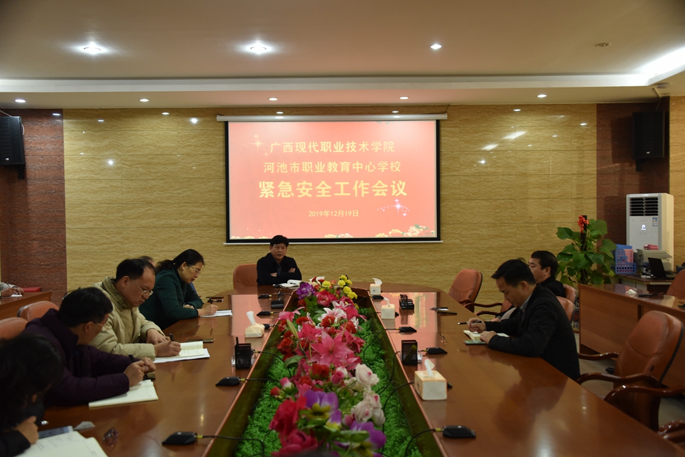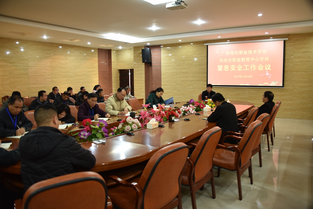 12日19日上午,学院在图书馆会议室召开紧急安全工作会议。党委书记韦伟松主持本次会议,并传达市委安全工作会议精神,细致部署学校安全工作。河池市职业教育中心学校领导、学院各系部负责人参会。