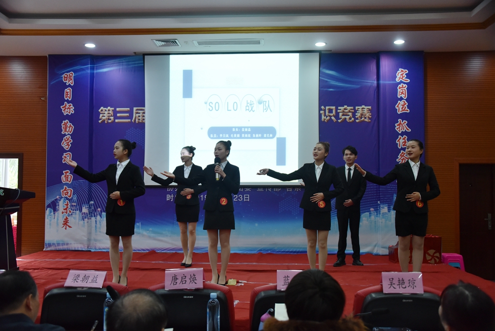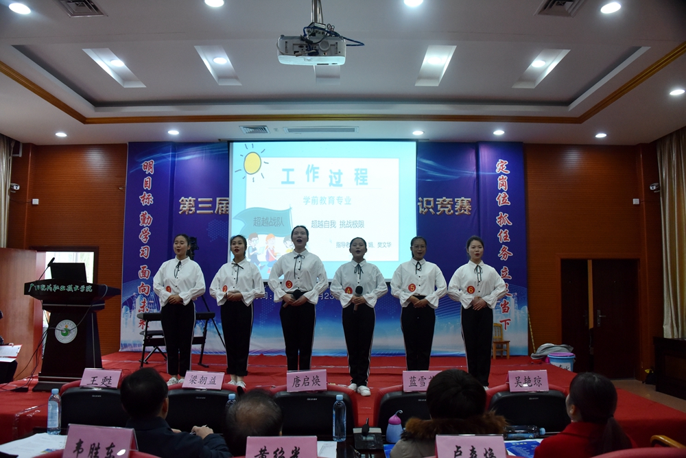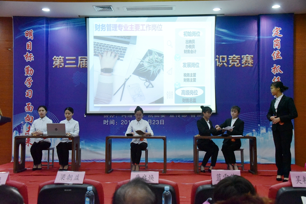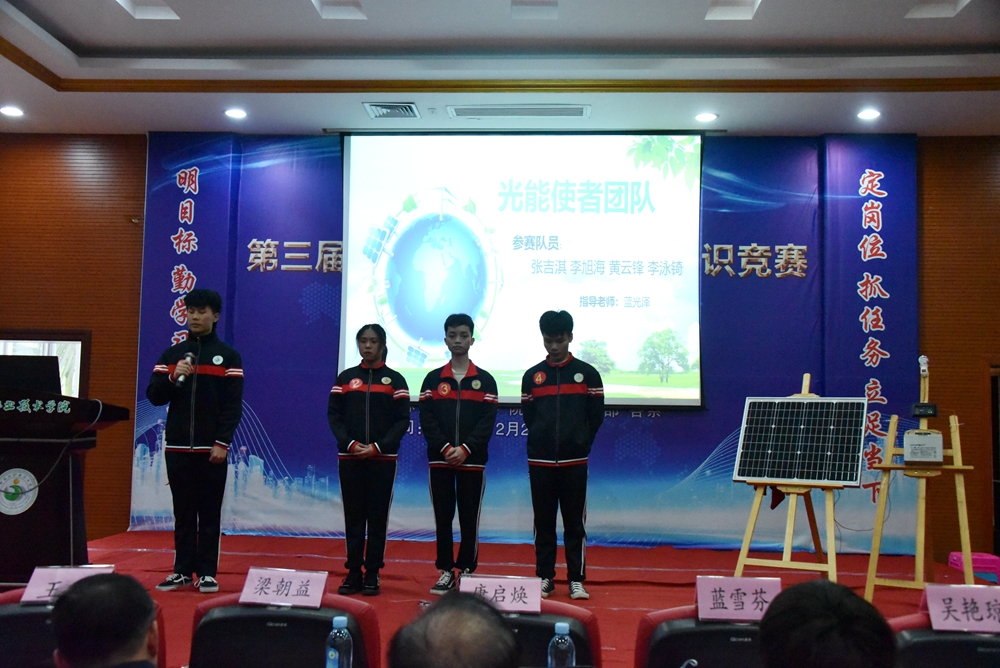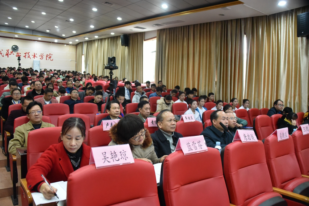 定岗位抓任务立足当下,明目标勤学习面向未来——我院第三届“强技杯”工作过程知识竞赛于12月23日下午在第二学术报告厅举行。学院院长黄绍光、副院长韦胜东出席本次比赛,市职业教育中心学校副校长唐启焕莅临现场观看并担任评委。本次决赛采用现场直播方式进行,在第二学术报告厅设主会场,各个教室进行现场直播。
