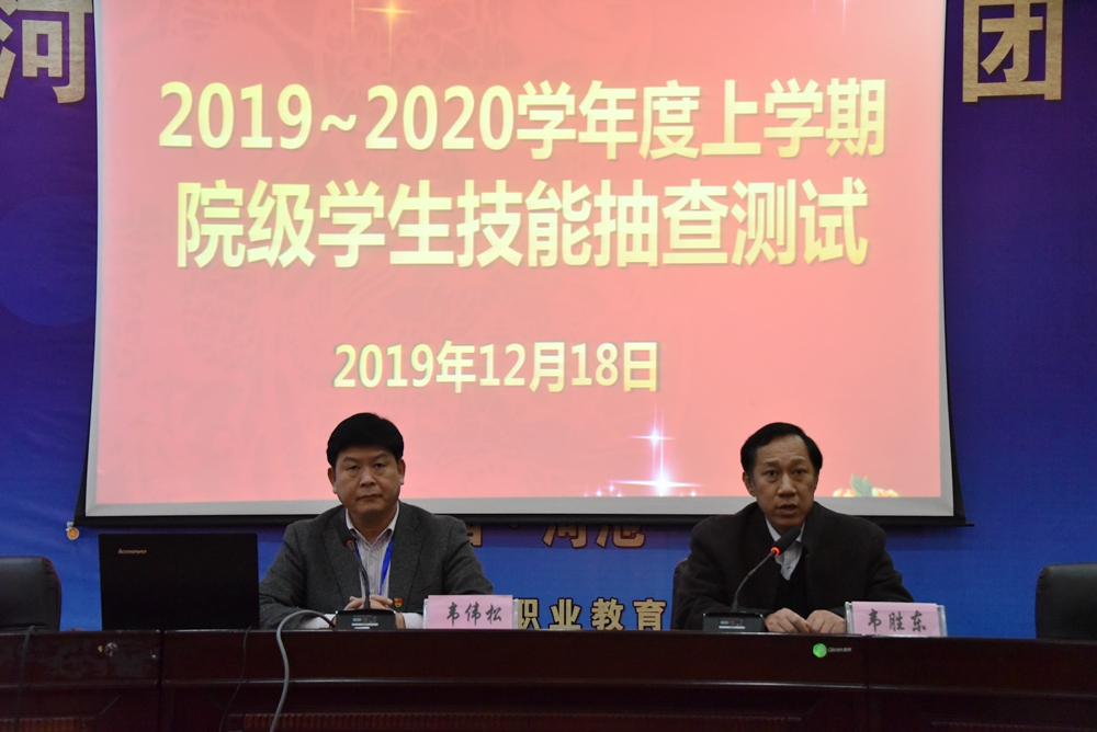 12月19日下午,我院组织开展2019-2020年度上学期院级学生技能抽查测试活动。学院党委书记韦伟松。学院副院长韦胜东及各系部负责人出席抽查活动。