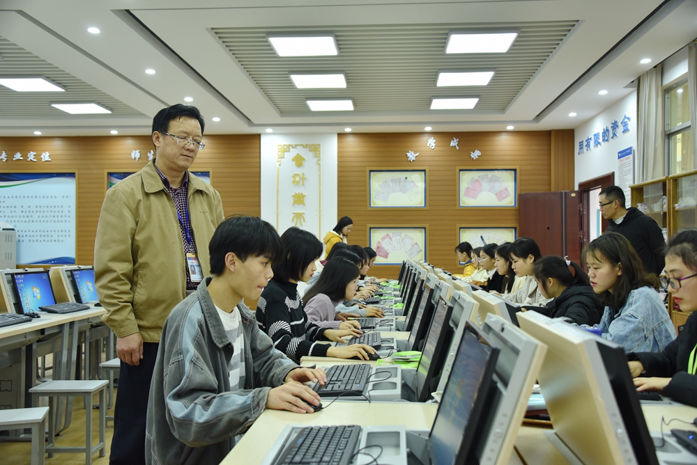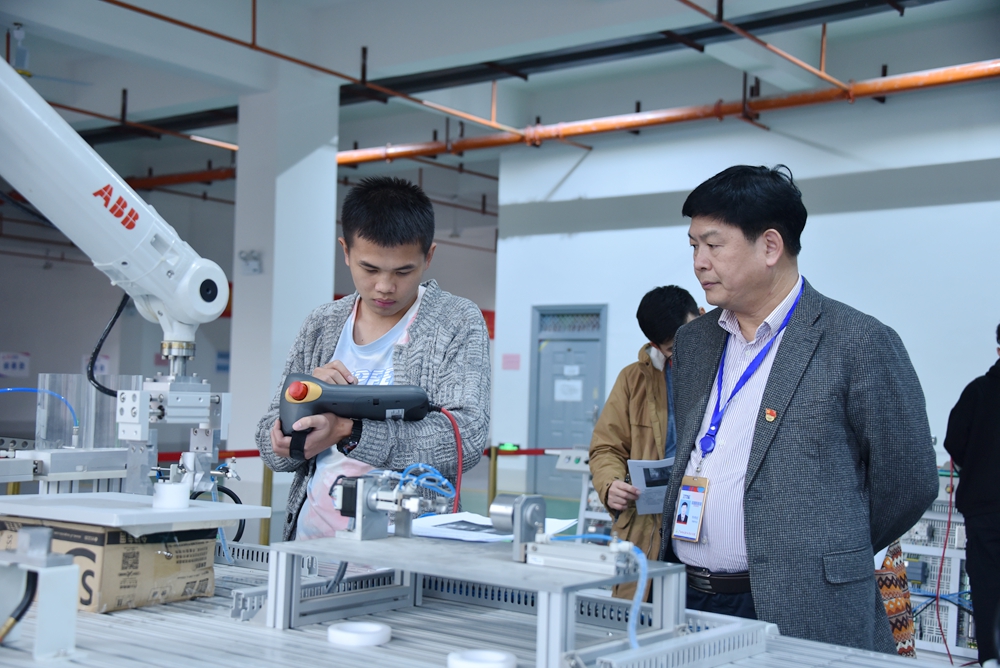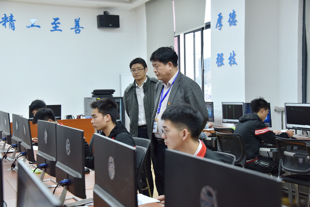 本次院级学生专业技能抽查测试共设置295个项目,涉及103门课,每个项目抽取5名学生参加考核,共抽查1475名学生,涉及的全院155个班级。抽查现场全程进行网络直播,各班学生在教室同步看到抽查结果。韦伟松书记带队分别到学前实训楼、机器人实训室、会计实训室等地现场查看学生抽查测试情况。