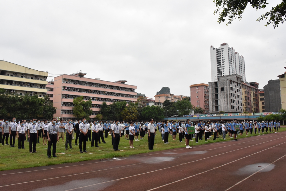 5月18日,我院在田径运动场举行2020年春季学期线上升旗仪式暨国旗下讲话活动。学院党委书记韦伟松、院长黄绍光,副院长卢森焕、黄耀、杨奎出席升旗仪式。学院全体教职工、第一批返校学生列队参加,第二批、第三批返校学生在宿舍观看活动直播。活动由副院长杨奎主持。