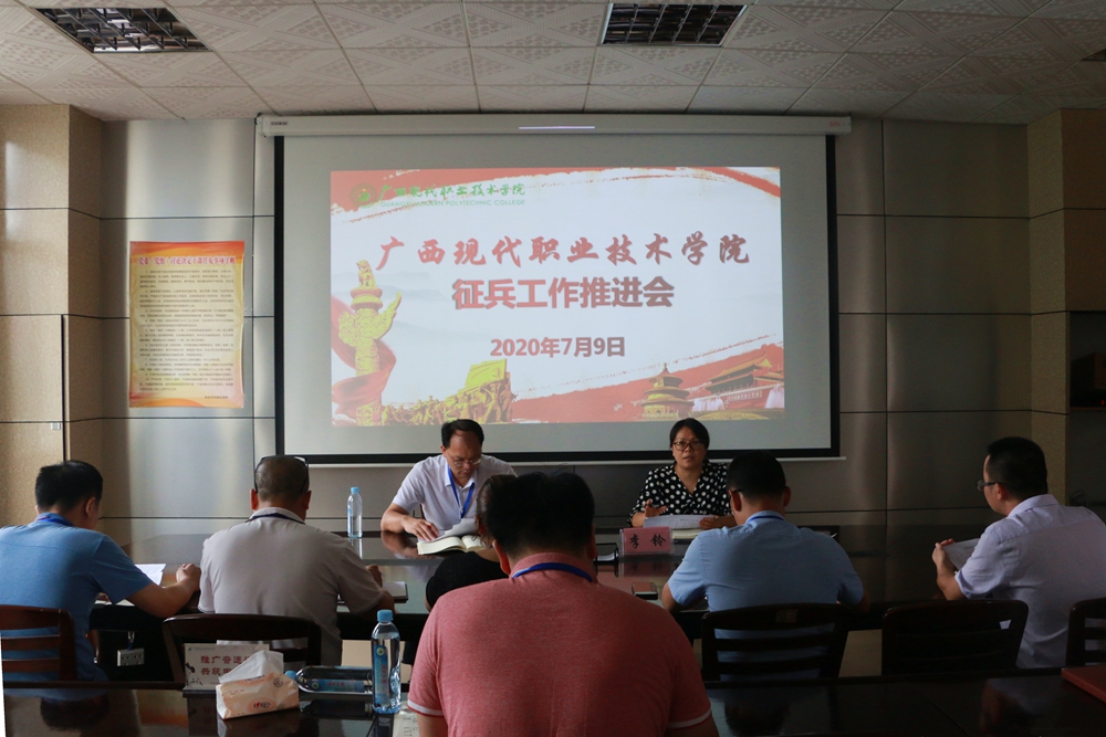为认真贯彻落实全国大学生征兵工作要求,进一步推动我院大学生征兵工作成效,对我院2020年征兵工作进行再部署、再推动、再落实。7月9日,我院在一号办公楼五楼会议室召开2020年征兵工作推进会。学院副院长杨奎、学生工作处处长李铃、各系书记出席会议。会议由李铃处长主持。