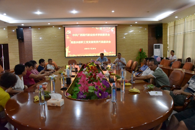 7月22日下午,学院在图书馆会议室召开离退休教职工党支部党员代表座谈会。学院副院长杨奎、人事处处长潘华林、工会主席陆峰出席会议,10多名离退休教职工党员代表参加座谈会。座谈会由人事处处长潘华林主持。