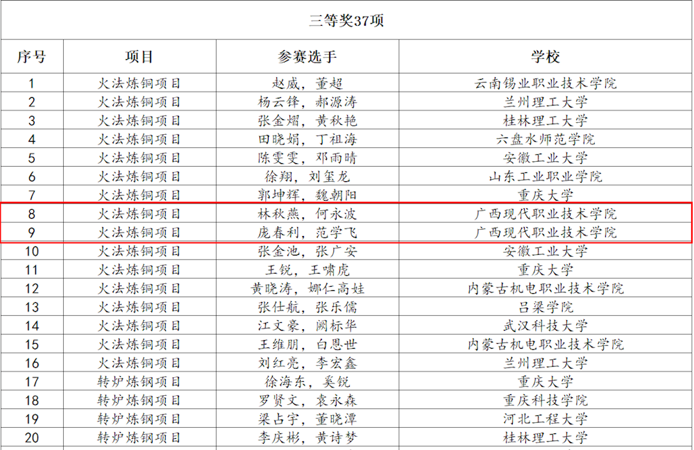 本次比赛共有来自全国31所冶金本专科院校,124个参赛团队,248名选手参加,包括中南大学、北京科技大学、东北大学等985高校。我院学子,在比赛中发扬“不畏强敌,永争第一”的精神,为我院争得了荣誉,体现了我院学子职业素养和技能水平,更体现出我院高度重视技能大赛在人才培养中的引领作用。