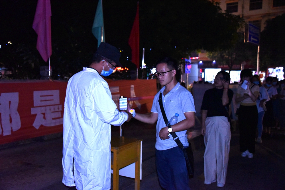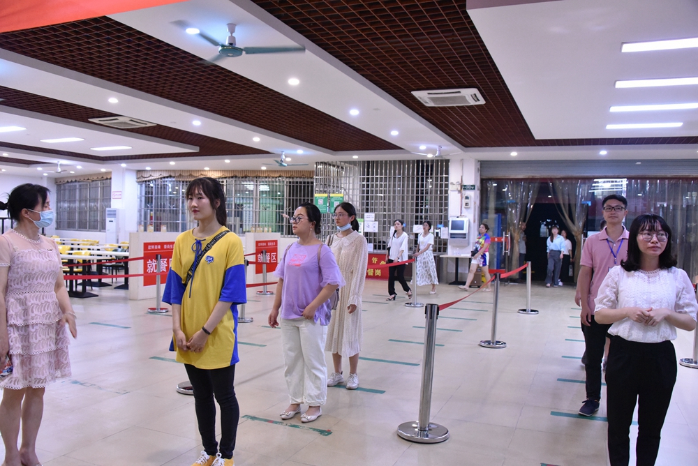 疫情防控理论课结束后,在学院相关负责人的带领下新教师们排队集合,有序的开展实际演练培训。