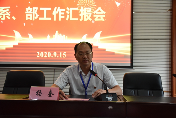 9月15日,我院召开2020年秋季学期各系、部PPT工作汇报会,学院党委书记韦伟松,院长黄绍光,纪委书记张斌,副院长卢森焕、黄耀、杨奎出席会议,全体教职工参加会议。会议由副院长杨奎主持。