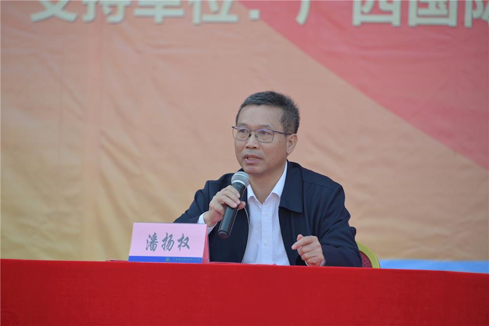 潘扬权在仪式上致辞。潘扬权指出,广西第三届粽子文化节暨广西河池粽子产业学院、河池市粽子产业扶贫示范基地揭牌仪式开幕和粽子联盟成立,标志着优米体育入口官网下载手机版和河池市职业教育中心学校产教融合、协同育人、开放办学等工作取得新突破。这是深度开展产教融合、校企合作的具体行动,也是推动河池粽子产业发展的重大举措。潘扬权强调,两校要通过全面深化河池民族饮食(粽子)文化传承,以小粽子做好大文章,助力地方脱贫攻坚,服务地方经济发展。要全面贯彻党的教育方针,认真落实职业院校对民族文化传承的责任,在两校“三全育人”教育理念下,进行广泛传播,助力强化劳动素质培养和立德树人根本任务的实现;要坚持创新引领创业、创业带动就业,以推进素质教育为主题,以提高人才培养质量为核心,以创新人才培养机制为重点,培育师生的创新创业精神、意识和能力;以优米体育入口官网下载手机版和河池市职业教育中心学校为龙头的粽子联盟,要充分利用校企双方各自的优势,强强联合,抱团发展。职业院校要以服务地方发展为己任,挖掘河池粽子特色,传承河池长寿美食文化,着力打造河池寿源粽产业链,助力河池市人民政府开展精准扶贫和乡村振兴。
