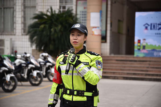 白建凌副支队长发表讲话,他表示,在上级党委、政府和公安机关的正确领导下,今年以来,河池公安交警部门一是强科技、严打击,提升路面管控效能,通过部署建设智慧路口、危险路段预警等系统,组织开展“护栏行动”、“减量空大”等系列行动;二是解民忧、惠民生,创新优化服务群众举措,大力推行交管业务“网上办”、“自助办”、“延期办”措施,积极推行新举措,建成使用24小时自助车管所;三是抓源头、重宣传,开展“七进”交通安全宣传活动,有效减少事故的发生,保障人民生命财产安全。