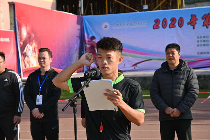 活动上,裁判员代表和运动员代表宣誓。刘志锋主任宣布2020年“青春杯”足球联赛开幕。