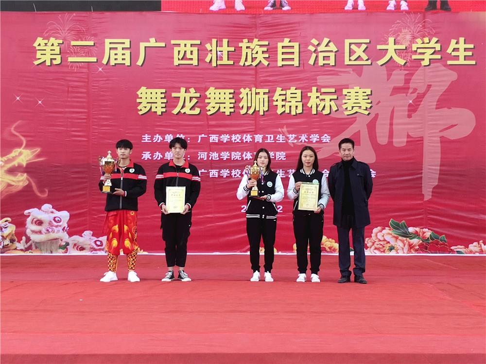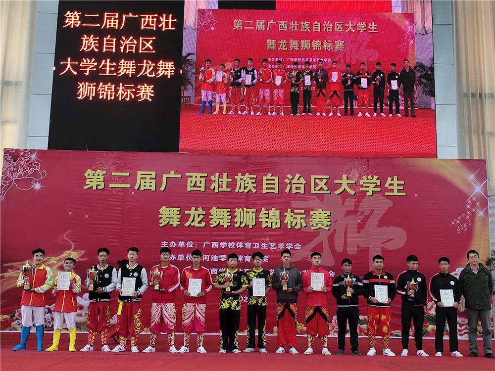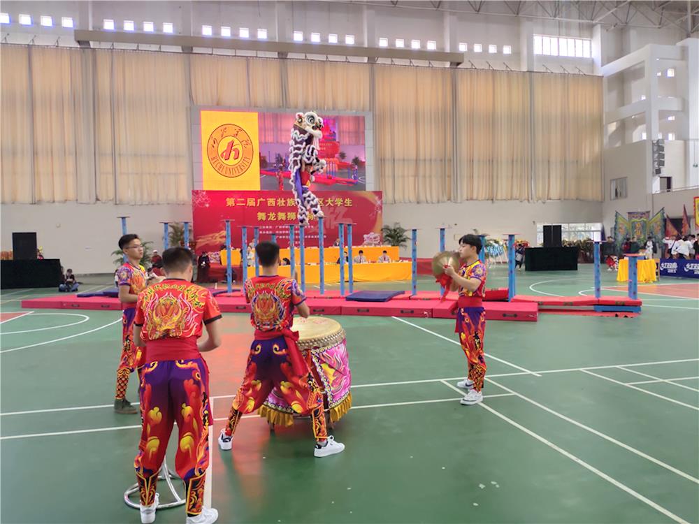 据悉,此次比赛由广西学校体育卫生艺术学会主办,河池学院体育学院、广西学校体育卫生艺术学会龙狮分会承办。这是广西高校体育文化的一件盛事,不仅展示了各高校的龙狮风采,而且展示了龙狮文化和龙狮精神,促进了广西各高校之间的传统体育文化交流,推动了广西高校龙狮运动的传播与发展。