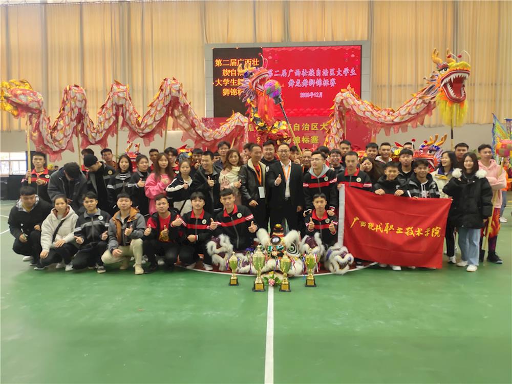12月1日—4日,第二届广西壮族自治区大学生舞龙舞狮锦标赛在河池学院举行。来自全区21所高校近500名运动员齐聚一堂,参与南狮自选、传统南狮、舞龙自选、传统舞龙四个项目的角逐。以我院机电工程系党总支书记黄仕珍为主教练、由机电工程系、建筑工程系近70名学生运动员组成的学院龙狮团参加了此次比赛。经过激烈角逐,我院龙狮团以全场最高分(9.13分)斩获传统舞龙项目第一名,这也是我院龙狮团首次在这一赛事中取得的最高奖项。此外,我院还荣获传统南狮项目第二名、(高桩)南狮自选项目第二名、(竞技)舞龙自选项目第六名的佳绩。