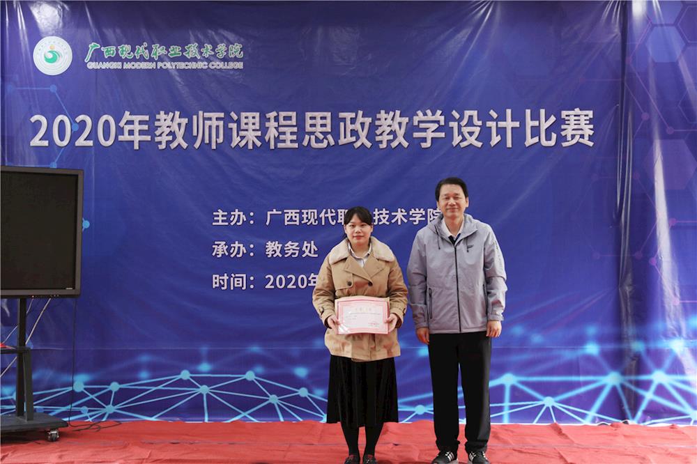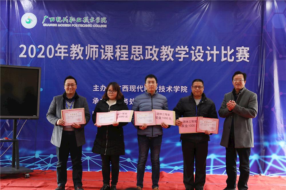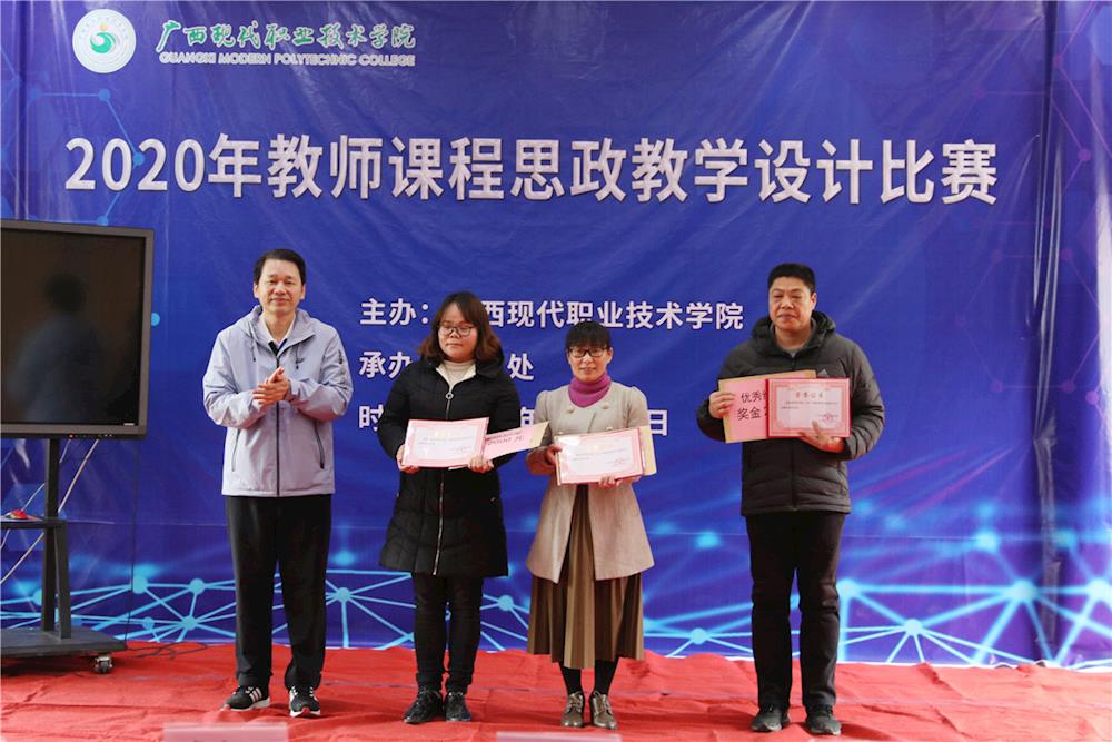 经过激烈角逐,建筑工程系黄韵洁老师获得本次课程思政教学设计比赛一等奖,教育系李奕莹、财经与商贸系莫弈锟、信息与电气工程系农建诚获二等奖,教育系覃湘荔、机电工程系牙举锋、体育部覃小升和资源工程系戴丽艳获得三等奖;教育系获得团体一等奖,建筑工程系获团体二等奖,信息与电气工程系和财经与商贸系获得团体三等奖。