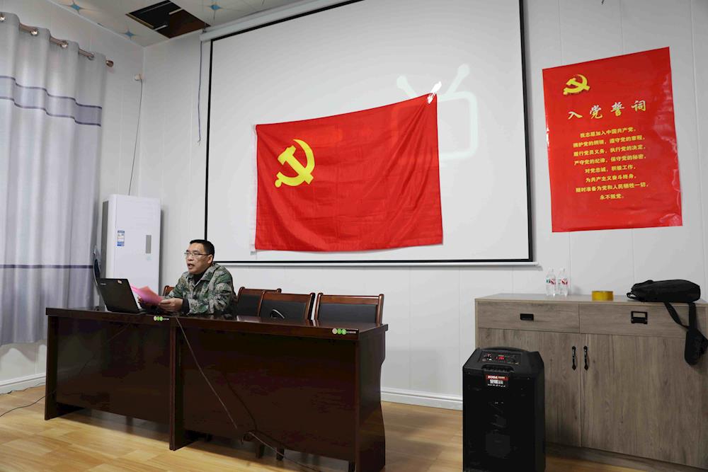 接下来由机关党总支书记韩锐上“建功新时代,奋发新作为——十九届五中全会精神解读”主题党课。他以深刻领会准确把握全会精神、做好全会精神学习宣传和研究阐释、扎实做好“十四五”时期教育工作为主要解读内容,带领全体机关党员学习并贯彻相关文件精神。党员们重温入党誓词,面对鲜红的党旗,高举右拳,字字铿锵,将誓词铭记于心。