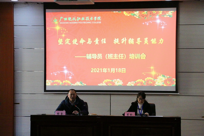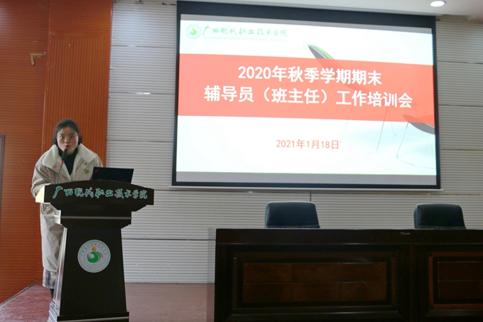1月18日,我院在第二学术报告厅召开2020年秋季学期期末辅导员(班主任)培训活动,学院各系党支部书记、辅导员(班主任)共140余人参加培训。