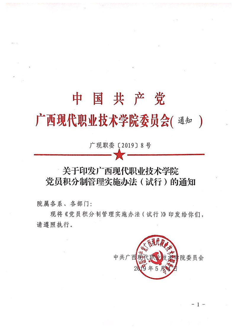 广现职委[2019]8号-关于印发党员积分制管理实施办法(试行)的通知 来源: 发布时间:2019-05-05 09:14:12 浏览次数: 次 【字体:小 大】 终审:gxxdxcb003 【打印正文】 相关信息